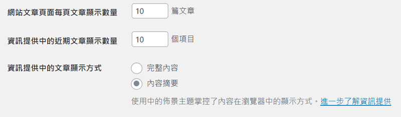 可以在後台設定中的"閱讀"找到"資訊提供中的文章顯示方式" ,並選擇"內容摘要"。