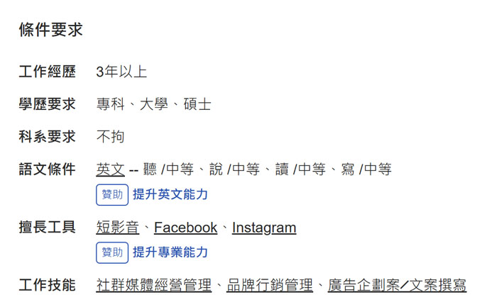 - 風險管理心態:要求學歷和年資,會讓 HR 和主管覺得有在做人才把關。但問題是,相關科系不一定能培養出優秀的網路行銷人才,年資也不代表有相對應的實力。