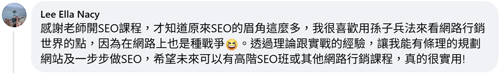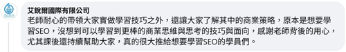 對於那些不吝於分享課後感想,以及願意推薦 SEO 課程的學員,於此我再次表達我的感謝。