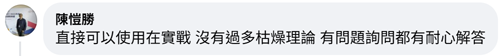 我的授課內容一向偏好採用理論解說和實務操作,讓學員知其所以然,並且知道如何實際應用操作。